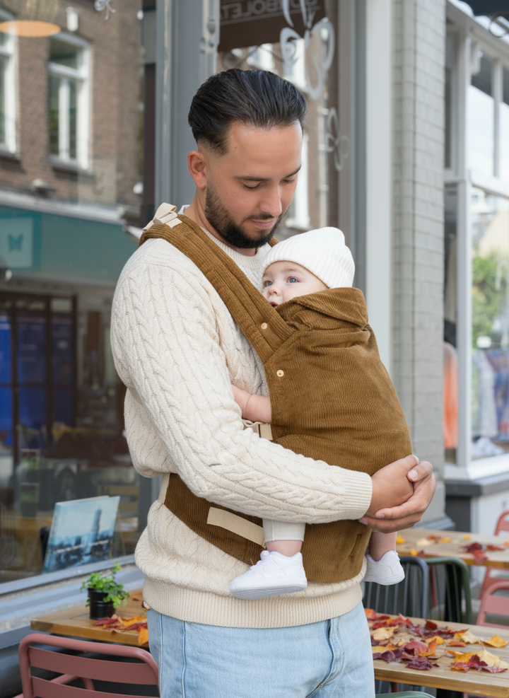 Stijl, draagcomfort en een minimalistisch design in één. Stap in een wereld waarin modern design en functionaliteit elkaar versterken. Met de warme karamelbruine ribstof en subtiele textuur voegt Luca een vleugje elegantie toe, terwijl je baby veilig en dichtbij is. Deze draagzak is ontworpen met aandacht voor kwaliteit, gemak en comfort, zowel voor jou als voor je baby. Dankzij de verstelbare pasvorm sluit Luca altijd mooi aan, ongeacht wie hem draagt, en kan het in drie verschillende posities gedragen worden: facing-in, facing-out en back carry. Dankzij de meegeleverde inlay zit je baby zich extra comfortabel in de facing-out positie. Geschikt voor baby's en peuters tot 15 kg. De verstelbare straps en hoogwaardige materialen zorgen voor een perfecte pasvorm, deze draagzak is een echte musthave.